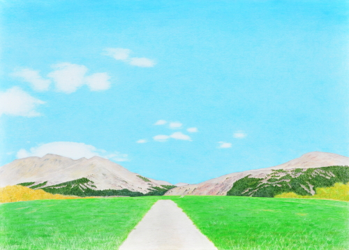 板張りの紙/色鉛筆